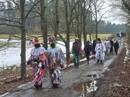 FRANTIŠKOV – Krátce po rozednění si mezi pastvinami a loukami prošlapávají zledovatělou cestu pestré postavičky. V širé krajině se trochu ztrácejí, ale je to jen zdání. Počet obyvatel Františkova nedaleko Suchdola nad Lužnicí se sice pohybuje jen kolem devadesátky, ale do masopustní obchůzky se letos zapojilo 65 masek, čtyřčlennou kapelu a „civilisty“ nepočítaje. V plánu je zahrát, zazpívat a potěšit sousedy u více než tří desítek chalup. K tradici však patří i spanilá výprava daleko za hranice obce. Pěkných pár kilometrů navíc.