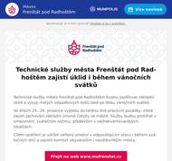 Technické služby města Frenštát pod Radhoštěm budou zajišťovat základní úklid a výsyp malých odpadkových košů také po dobu vánočních svátků. Ve dnech 24.–26. prosince vyjedou do terénu dvě pracovní posádky, které zajistí zachování základní úrovně čistoty ve městě. Služby budou probíhat v omezeném, svátečním režimu, především v nejfrekventovanějších lokalitách. Cílem opatření je udržet veřejný prostor v odpovídajícím stavu i během svátečních dnů a zajistit komfort obyvatelům i návštěvníkům města.