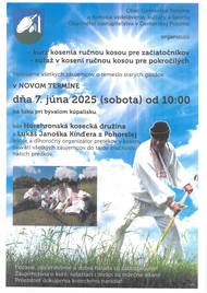 Srdečne pozývame všetkých záujemcov o remeslo starých gazdov v sobotu 24. mája 2025 o 10.00 hodine na lúku pri starom kúpalisku v Gemerskej Polome na kurz a súťaž v kosení ručnou kosou.