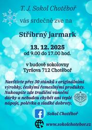 T. J. Sokol Chotěboř vás srdečně zve na Stříbrný jarmark, který se uskuteční 13. 12. 2025 v budově sokolovny v Chotěboři. Akce bude probíhat od 9:00 do 17:00 hodin a nabídne více než 30 stánků s originálními výrobky a českými řemeslnými produkty.