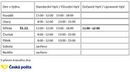 Česká pošta si dovoluje informovat o dočasné změně hodin pro veřejnost provozovny 582 82 Golčův Jeníkov. Rozsah hodin pro veřejnost bude omezen na nezbytně nutnou dobu dne 31.12.2025 od 11 do 12 hodin z provozních důvodů.