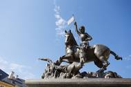 Rytířský turnaj na Pražském hradě je v plném proudu, když se náhle ozve ohlušující rána. Bronzová jezdecká socha svatého Jiří, na kterou pro lepší výhled vyšplhal hrozen diváků, se zřítila k zemi. Legenda praví, že římský voják jménem Jiří se ocitl v libyjském městě Kyréna právě v okamžiku, kdy si tam nelítostný drak vyžádal za oběť královskou dceru.