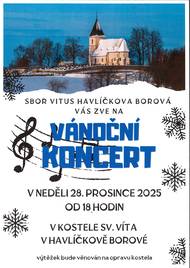 Sbor Vitus Havlíčkova Borová vás zve na Vánoční koncert, v něděli 28. prosince 2025 od 18 hodin v kostele svatého Víta v Havlíčkově Borové.