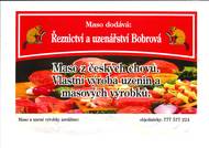 Řeznictví a uzenářství Bobrová nabízí vlastní uzeniny a masové výrobky. V nabídce jsou česká čerstvě nabouraná masa: kuřecí prsa, krkovice, kotletky, plece, boky, gulášové kostky, vepřové výpečky, panenky, mleté mix, kližka a další sortiment. Lze objednat naložená a marinovaná masa na uzení.(celé kýty, krkovice, kotlety, boky, plece, kolena....) Dále domácí uzené krkovice, kotletky, boky, párky, klobásy, salámy, škvarky, tlačenka, paštiky, jitrnice, jelita, sádla, špekáček... Doplňkový sortiment: Slovenské syrové nitě, nakládané sýry z farmy Březiny, maršovský sýr (zrajíci) a další pochutiny. V nabídce i speciální vánoční edice: Uherský salám (Čert, Mikuláš, Adventní kalendář bez lepku). Všechny výrobky jsou z českých chovů a vlastní výroby. Zdržení dle zájmu občanů, maximálne však 10 min. z důvodu hygienické normy.