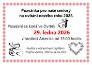 Klub seniorů Havlovice srdečně zve své členy na tradiční uvítání nového roku 2026, které se uskuteční ve čtvrtek 29. ledna 2026 od 15:00 hodin v hostinci Amerika. Pro všechny účastníky je připraveno příjemné posezení s hudbou a občerstvením. Přijďte si společně popovídat, zavzpomínat a strávit příjemné odpoledne v přátelské atmosféře. Těšíme se na Vaši účast.