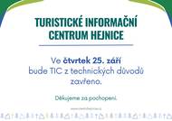 Ve čtvrtek 25. září bude turistické informační centrum z technických důvodů zavřeno. Děkujeme za pochopení, budeme se na vás těšit v pátek.