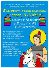 Klub žen Helvíkovice, z.s. a Mateřská škola Helvíkovice srdečně zvou na Svatomartinskou slavnost v sobotu 9.11.2024 od 16.00 h na Statku č.p.49 v Helvíkovicích. Občerstvení nabídneme od 16.30 h na sálku v budově obecního úřadu Helvíkovice - k prodeji budou Martinské rohlíky, Svatomartinská husa aj.
