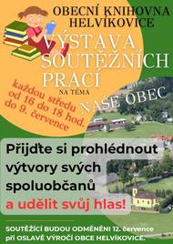 Přijďte se podívat na výtvory svých spoluobčanů a podpořit soutěžící, kteří budou odměněni 12. července při oslavě výročí obce Helvíkovice. Hlasovat můžete každou středu od 16 do 18 hod. v Obecní knihovně v Helvíkovicích do 9.července.