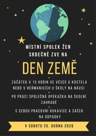 Místní spolek žen srdečně zve všechny občany na dobrovolnickou akci u příležitosti Dne Země, která se uskuteční v sobotu 25. dubna 2026. Začátek: v 15:00 hodin. Sraz účastníků: proběhne souběžně ve Vésce u kostela a v Heřmanicích u školy na návsi.