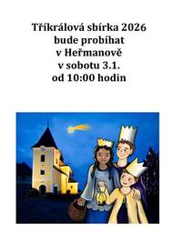 Tříkrálová sbírka bude probíhat v Heřmanově již v sobotu 3.1.2026.