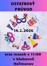 Sraz masek v 11:00 hodin v KD Heřmanov. Kdo chce půjčit masku, prosím kontaktujte nás obratem.