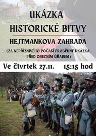 Přijďte na ukázku historické bitvy ve čtvrtek 27.11.2025 v 15:15 hod. do Hejtmánkovy zahrady.