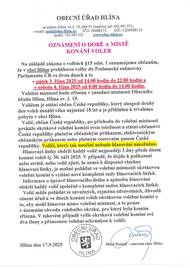 Od 25.7. do 1.8.2025 nebudou z důvodů dovolené na obecním úřadě Hlína úřední hodiny .