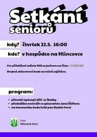Připomínka - setkání seniorů - čtvrtek 22.5.2025 od 16:00, hospoda