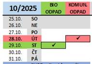 Kalendář svozů (komunální odpad a bioodpad) v posledním čtvrtletí 2025