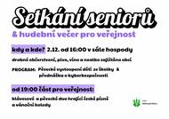 Úterý 2.12. - sál hospody: od 16:00 setkání seniorů (s vystoupením dětí z MŠ a přednáškou o kyberbezpečnosti) od 19:00 hudební večer (klávesové a pěvecké duo) i pro širší veřejnost