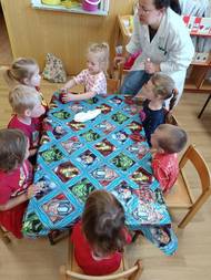 Dne 7.5. si děti mohly poslechnout "Africké bubnování". Každé dítě dostalo svůj bubínek, na kterém opakovalo melodii. Děti byly z vystoupení nadšené.