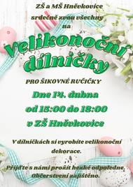 Vážení občané, připomínáme dnešní akci v ZŠ Hněvkovice. Velikonoční dílničky se konají dnes od 15:00 - 18:00.