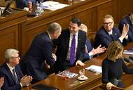 Před 1 dnemPředseda opozičního hnutí STAN Vít Rakušan neuspěl v prvním kole tajné volby čtvrtého místopředsedy sněmovny. Bývalý ministr vnitra je teď jediným kandidátem. Poslanci v pátek naopak podpořili návrh na zastavení růstu sociálních odvodů živnostníků. Opozice opět neprosadila doplnění programu schůze o odvolání předsedy SPD Tomia Okamury z čela sněmovny kvůli výrokům o Ukrajině. Sněmovna hlasy koalice vyzvala prezidenta, aby jmenoval ministry bezodkladně.Jmenujte ministry bezodkladně, vyzvala Pavla Sněmovna. Prezidenta nemá co úkolovat, opáčil Hrad