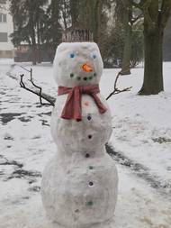 Před vstupem do budovy rozptyluje dobrou náladu všem: "PAN SNĚHULÁK" z okna se na nás usmívá a vítá každého, kdo přichází. Malý zimní detail, který dokáže vykouzlit úsměv na tváři a zpestřit všední den.