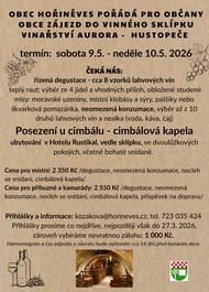 Před 6 měsíciPozvání na exkurzi do muzea betlémů a Skanzenu KrňoviceMikroregion obcí Památkové zóny 1866 Vás srdečně zve - v rámci projektu “Environmentální vzdělávání Mikroregionu OPZ 1866” na exkurzi do Třebechovického muzea betlémů a prohlídku Podorlického skanzenu Krňovice spojenou s ukázkou pečení chleba - sobota 27.9. 2025. Odjezd autobusu z Hořiněvsi v 8:00, další zastávky, vždy dle zájmu a domluvy. Informace a rezervace míst nejpozději do: 22.9.2025, na tel. 723 035 424, email: kozakova@horineves.cz