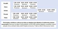 Aktualizovali jsme grafiku rozpisu ordinační doby. Upravili jsme přehled ordinačních hodin tak, aby bylo jasně vidět, že na přesný čas objednáváme nejen preventivní prohlídky, očkování a konzultace, ale také nemocné pacienty. Naším cílem je větší přehlednost a méně čekání v čekárně. Děkujeme, že respektujete objednávkový systém – pomáhá nám věnovat se každému dítěti v klidu a bez zbytečného stresu. Jak se objednat? Nejlépe online přes aplikaci Medevio, kde si sami zvolíte vyhovující čas: https://my.medevio.cz/valped?fbclid=IwY2xjawQL4DBleHRuA2FlbQIxMABicmlkETBQZTBWN1ZpdWNGbDBMWU8wc3J0YwZhcHBfaWQQMjIyMDM5MTc4ODIwMDg5MgABHvfQLdRJgQoY4wHCKyOftt2vwmzhTm9vXKPYK1pwWqPocdamT1xzIu2pwsxq_aem_Ub-XMKGzwo-D49XglPQn-Q Telefonicky – 571 412 365 nebo 604 306 815