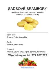 pátek 6.3.2026 12:00-12:10 *Parkoviště u Jednoty Zelenina Juvita Uherský Brod bude prodávat: -certifikované sadbové brambory z Vysočiny od 18Kč/kg -cibuli 16Kč/kg -jablka 25Kč/kg -konzumní brambory 12Kč/kg -česnek, cibuli sazečku - další ovoce a zeleninu. - žampiony, hlívu ústřičnou - čalamádu, olejové svíčky a med. Řidič přijímá objednávky na sadbové brambory na telefonním čísle : 777 897 272 Juvita s.r.o. Boršice u Blatnice 20 687 63 tel.606 575 578