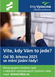 Upozorňujeme, že od 30. března se mění jízdní řád. Nová spojení můžete vyhledat na www.idos.cz