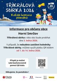 V sobotu 3. ledna 2026 proběhne v naší obci Tříkrálová sbírka.