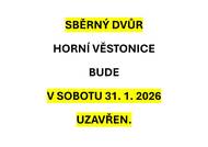Oznamujeme, že v sobotu 31. 1. 2026 bude sběrný dvůr v naší obci uzavřen.