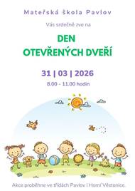 MŠ Pavlov Vás zve na Den otevřených dveří. Akce proběhne ve třídách v Horních Věstonicích i v Pavlově.