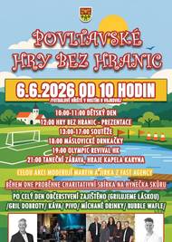 Hry bez hranic se konají 6.června 2026,program pro všechny věkové kategorie.Od 10:00 dětský den,následuje prezentace her ve 12:00,poté soutěže,které potrvají do 17:00.Od 18:00 hudební program,který bude pokračovat až do nedělního rána.Celý den bude probíhat také charitativní sbírka na Hynečka Skůru