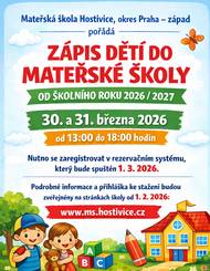 Před 3 měsíciZápis do 1. tříd pro školní rok 2026/2027Vážení rodiče budoucích prvňáčků, zveme Vás k zápisu dětí do 1. tříd pro školní rok 2026/2027 na ZŠ Hostivice. Podrobné informace o termínech, organizaci zápisu, potřebných dokumentech a dalších náležitostech naleznete v přiloženém letáku.