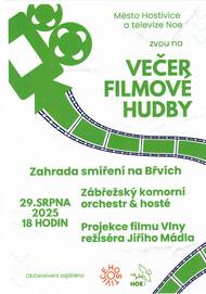 Přijďte si užít spojení živé hudby a silného filmového příběhu v atmosféře letního večera. 📅 Kdy: pátek 29. srpna 2025 🕕 Čas: od 18:00 - 22:00 hod 📍 Kde: Zahrada smíření na Břvích (mapy cz) ✨ Program večera: 🎼 Zábřežský komorní orchestr zahraje slavné filmové melodie 🎥 Filmová projekce oceňovaného snímku VLNY režiséra Jiřího Mádla – napínavý historický thriller o odvaze novinářů Československého rozhlasu v době Pražského jara 🌦️ Akce se koná za každého počasí! Doporučujeme vzít si s sebou: pláštěnku nebo nepromokavou bundu, podsedák, karimatku či deku na sezení, dobrou náladu a chuť na kulturní zážitek.