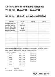 Od 07. 04. 2026 (úterý) do 09. 04. 2026 (čtvrtek) Ruší se zastávka: Hostovlice,ObÚ Přemísťuje se: Hostovlice,u hřiště – Obousměrně k č.p. 88