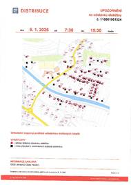 Dne 6. 1. 2026 v době 7:30 - 15:30 bude přerušena dodávka el. proudu v části obce Hovězí - Řečiska.