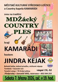 Městské kulturní středisko Loštice a Country kapela Kamarádi Vás dne 7. 3. 2026 od 19. hod. zvou na tradiční MDŽácký Country ples. Bohatá bašta, točené pivečko, míchané nápoje a tombola.