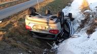 Neděle „na střeše“: Hasiči na Hradecku nezaháleli, auta končila v příkopech koly vzhůru
