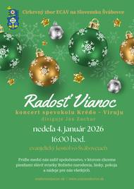 Cirkevný zbor ECAV na Slovensku Švábovce vás srdečne pozýva na koncert spevokolu Krédo – Viruju s názvom Radosť Vianoc.