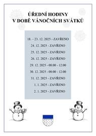 Dne 27. 10. 2025 jsou úřední hodiny na obecním úřadě zrušeny z důvodu dovolené. Děkujeme za pochopení.