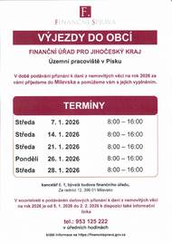Možnost vyřídit přiznání k dani z nemovitých věcí na rok 2026 v budově bývalého finančního úřadu v Milevsku.