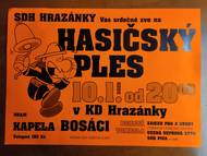 SDH Hrazánky Vás srdečně zve na hasičský ples, v sobotu 10. 1. 2026 od 20.00 hodin, vstupné 150 Kč, bohatá tombola. Hraje kapela Bosáci.