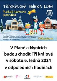 Dne 6.1.2024 se v obcích Planá a Nynice koná Tříkrálová sbírka v odpoledních hodinách.