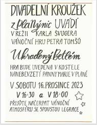 Dne 16.12. se od 16:30 a 18:00 koná v kostele v Plané divadelní představení v podání divadelního kroužku z Planýnic ,,Ukradený betlém".