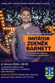 Dne 6. března 2026 od 18:00 hodin vystoupí v sále hasičské zbrojnice Žichlice čp. 3 bavič a imitátor Zdeněk Barnett. Program je složen ze dvou vystoupení v délce 2 × 40 minut, přičemž první část se zaměří na imitace známých osobností a hlasů, druhá část představí hudební vystoupení ve stylu K.Gota.