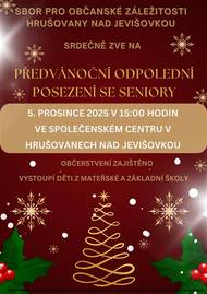 Sbor pro občanské záležitosti Hrušovany nad Jevišovkou srdečně zve na předvánoční odpolední posezení se seniory