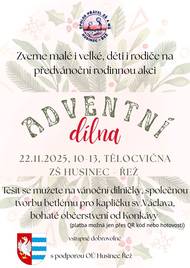SPŠ vás zve na Adventní dílnu, která proběhne dne 22.11.2025 od 10-13h v tělocvičně Husinec - Řež. tým OÚ