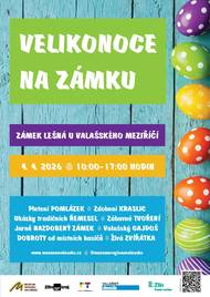 Zámek Lešná u Valašského Meziříčí ožije v sobotu 4. dubna pravou velikonoční atmosférou. Zájemci si budou moci uplést vlastní tatar, namalovat kraslici, vytvořit výrobek z kukuřičného šustí nebo se nechat zasvětit do tajů tradičních řemesel. Ať už prostřednictvím řezbářské dílny s výrobou lodiček a píšťalek či při ukázkách práce s ovčí vlnou. Součástí nabídky budou i komentované prohlídky jarně vyzdobeného zámku a chybět nebudou ani živá zvířátka z farmy chovatele Vojtěcha Molka. O hudební doprovod se postará známý valašský gajdoš Petr Sovják. Místní hasiči a další prodejci připraví nejrůznější dobroty pro děti i dospělé. Více na https://www.muzeumvalassko.cz/akce-a-vystavy/velikonoce-na-zamku-lesna-2