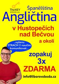 Pan Libor Svoboda pořádá od dubna pro místní občany a občany z blízkého okolí kurzy Angličtiny a Španělštiny. Zbavte se strachu a naučte se komunikovat díky efektivní metodě. ANEB tentokrát už se jazyk konečně naučíte. Vhodné pro začátečníky, věčné začátečníky i mírně pokročilé. Bližší informace info@liborsvoboda.cz