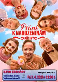 V domě Líby (Eva Holubová) a Arnošta (Jaroslav Dušek) vrcholí přípravy na křtiny, které mají proběhnout přesně podle Líbina detailního plánu – včetně volby jména dítěte. Nic však nejde podle očekávání: snacha Simona (Simona Babčáková) zvolí tajně jiné jméno, Arnošt se zaplete do „detektivního“ pátrání po ztracených klíčích a domnělé krádeže, zatímco Karel (Matěj Hádek) a jeho kamarád Richard (Jaroslav Plesl) řeší nedorozumění ve zlatnictví. Chaos ještě znásobí zmatená prodavačka Vlastička (Anna Polívková), která ztratila paměť. S blížícím se dnem křtu vyplouvají na povrch tajemství, identity se vyjasňují a rodinné vztahy procházejí zatěžkávací zkouškou. Kino Zbrašov – Teplice nad Bečvou 99, sál kulturního domu s kapacitou 150 diváků. Otevíráme 20 min před začátkem představení. Možnost občerstvení v přízemí kulturního domu – prodejna potravin otevřena do 19 hod. Předprodej vstupenek nezajišťujeme – kdo dřív přijde, má větší možnost výběru místa.